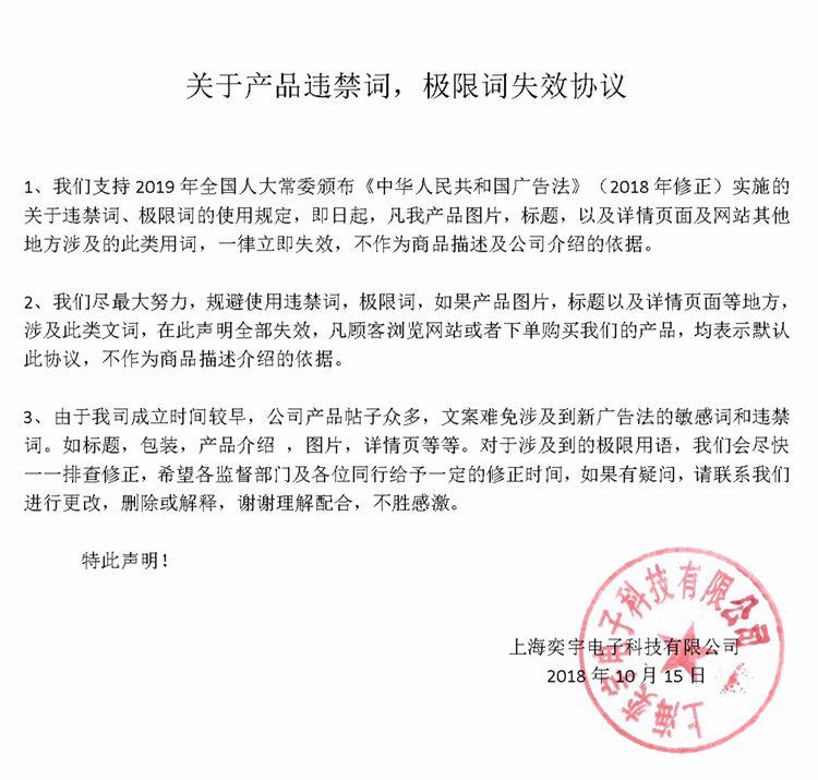關于產品違禁詞,極限詞失效協議